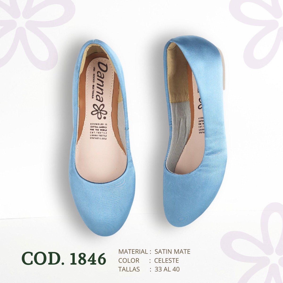 Flats Lisa Satin Celeste